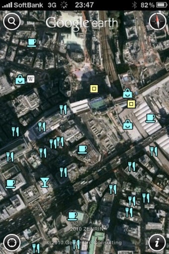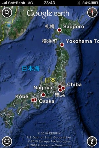 Google Earth アプリを開くと、地球儀が表示されます。地球の上でクリック/タップして、地球を拡大・縮小表示することができます。地球をさらに拡大していくと、国名、都市名、建物名など、より詳細な情報を見ることができるようになります。ストリートビュー機能を使用すれば、上空写真だけでなく、実際のその場所を360度パノラマで楽しむことが可能です。